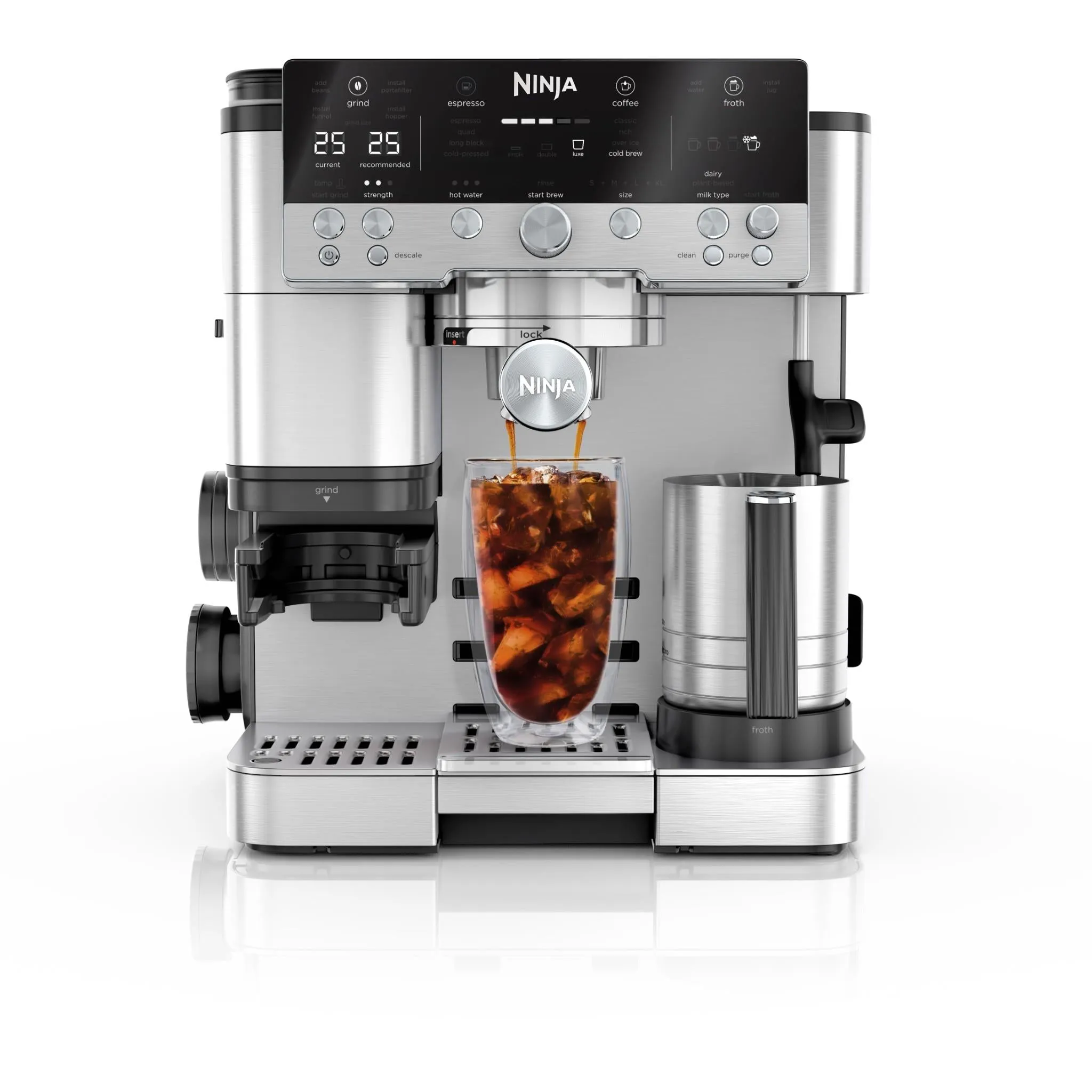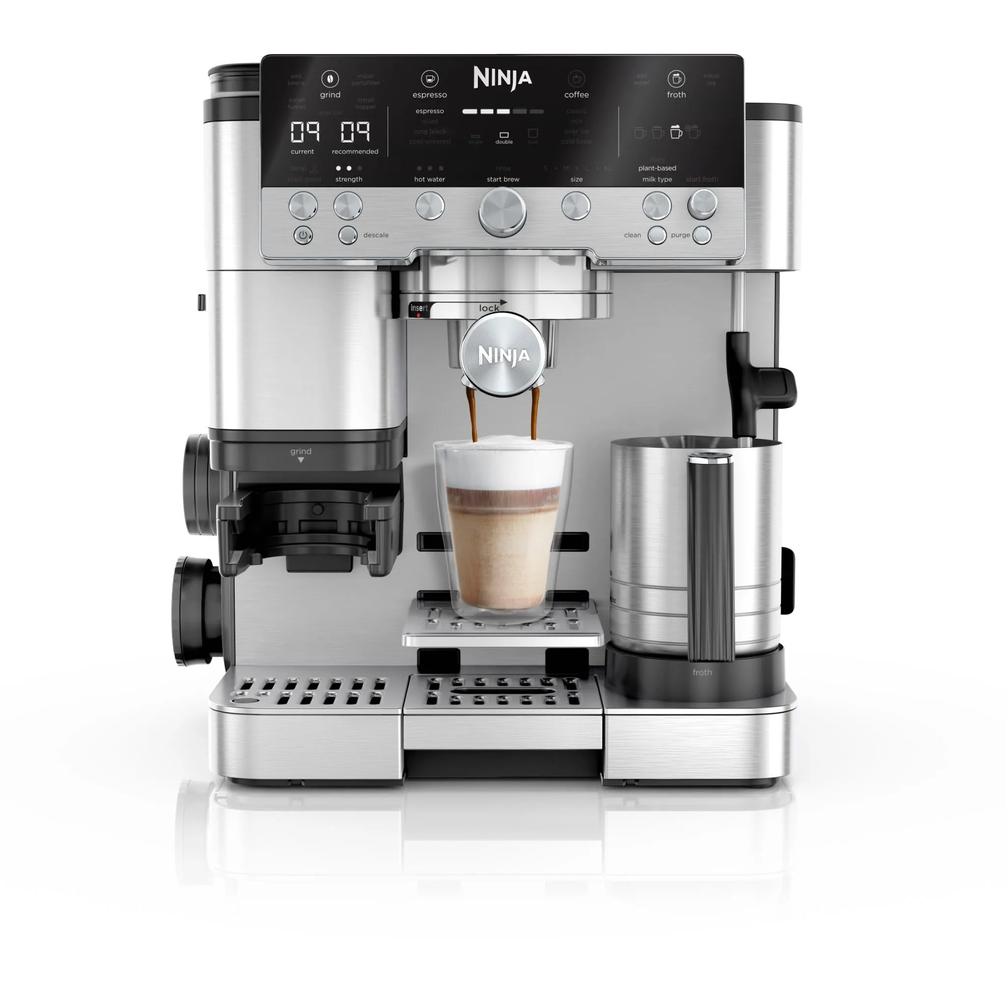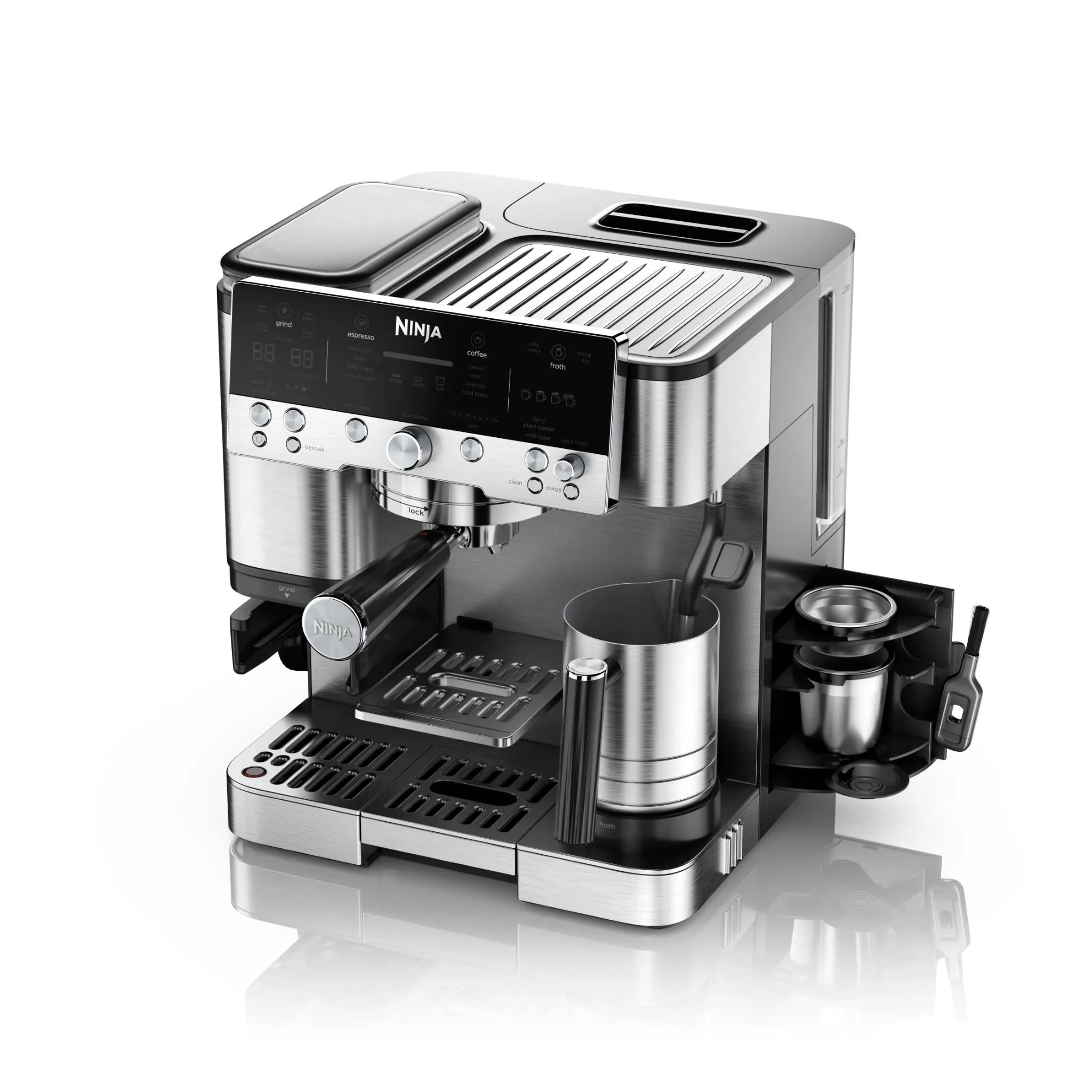 نازل بخار اسپرسوساز Ninja ES601UK توانایی تولید فوم شیر ضخیم و مخملی را دارد که کاملاً مناسب تهیه: