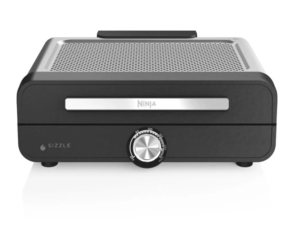 Ninja GR101EU Sizzle یک گریل رومیزی/تماسی هوشمند و کمدود برای استفاده در فضاهای داخلی است که با توان مصرفی ۱,۴۵۰ وات قادر به روشنشدن سریع و پخت با دمای بالا تا ۲۶۰ °C میباشد. این مدل دارای دو صفحه قابل تعویض شامل صفحه گریل با شیارها و صفحه پلانچا صاف است که امکان پخت طیف متنوعی از غذاها را با حداقل یا بدون روغن فراهم میسازد.